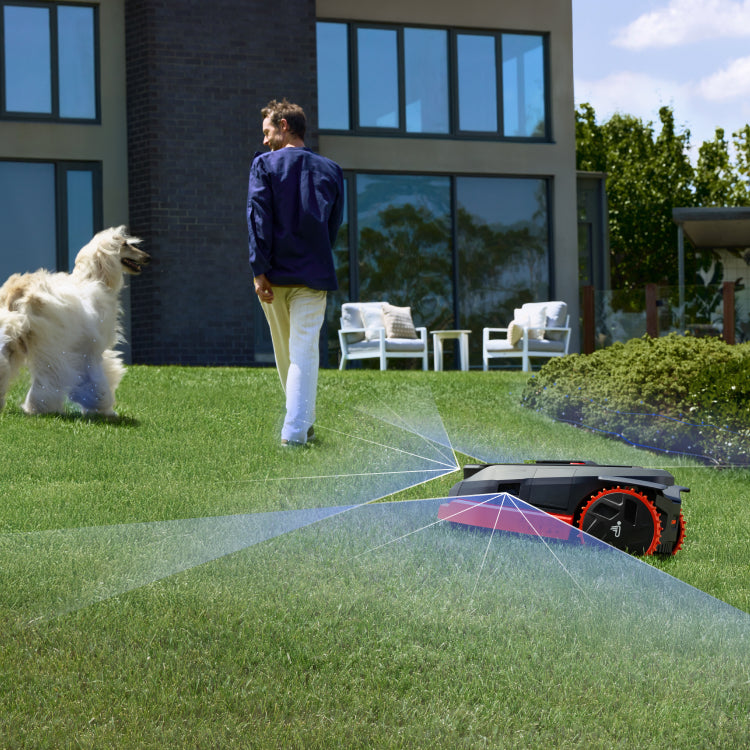 VisionFence™ ensures worry-free lawn care with advanced safety and obstacle avoidance. Its 300° wide-angle view detects people from up to three meters away, slowing to 0.2 m/s at a safe distance. The intelligent Planner algorithm navigates with precision, for family-friendly safety without compromising on performance.